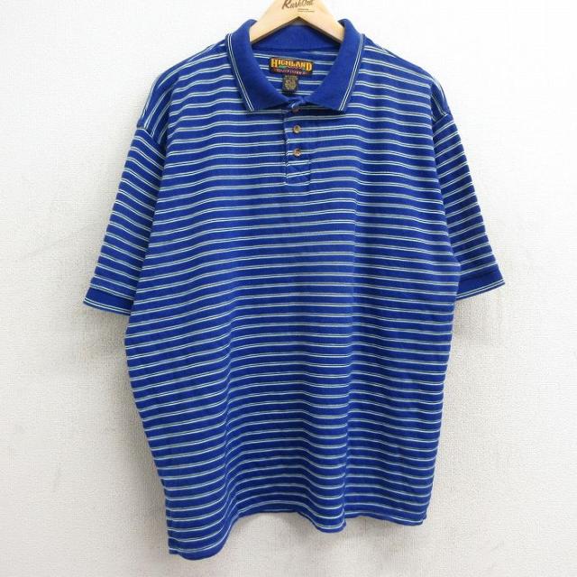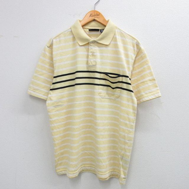 古着 ピューリタン 半袖 ポロ シャツ メンズ 00年代 00s 薄黄他 イエロー ボーダー XLサイズ 中古 トップス 中古 古着
