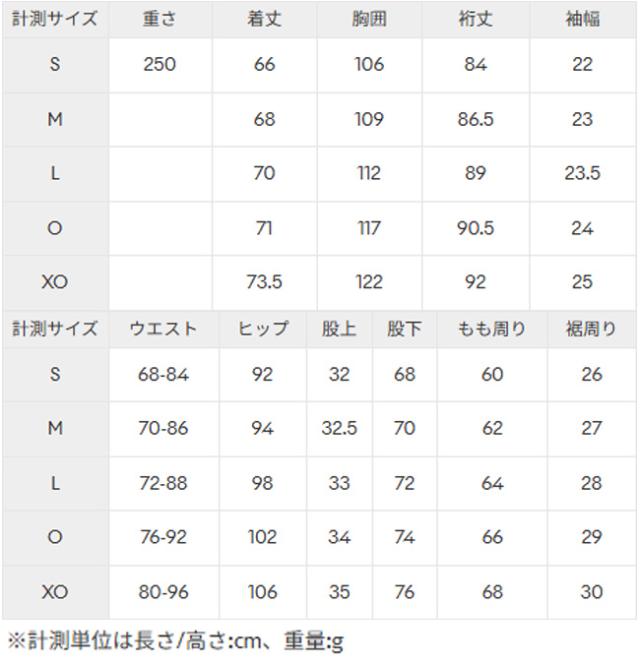 サイズ:身長 / 胸囲 / 胴囲