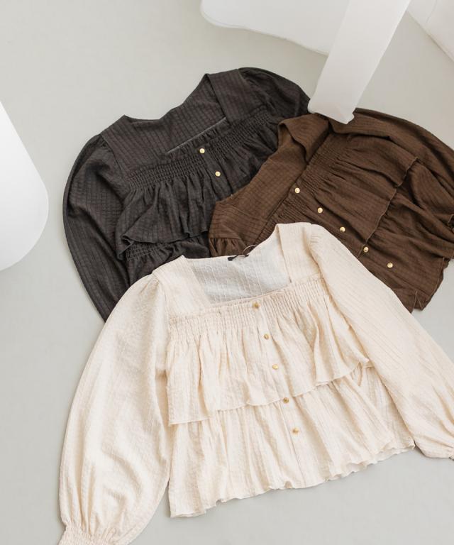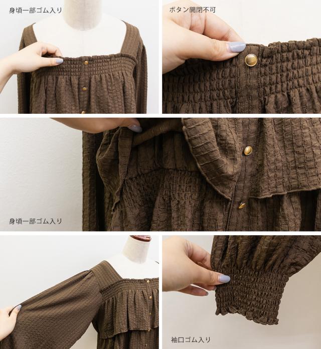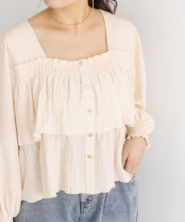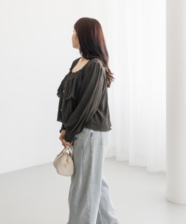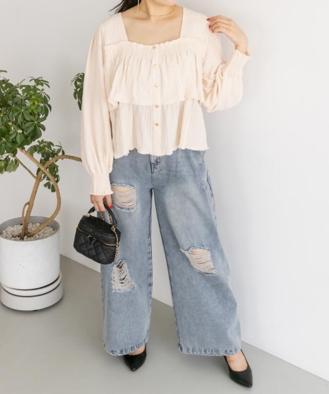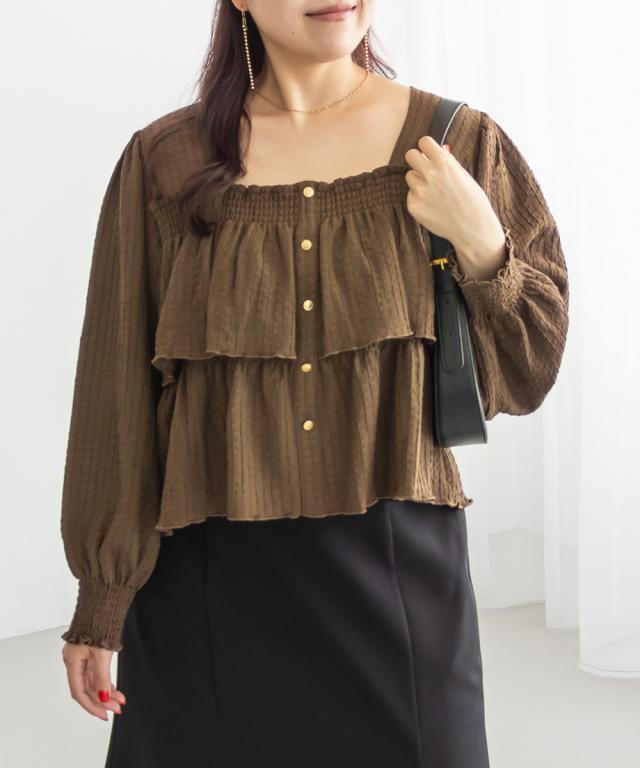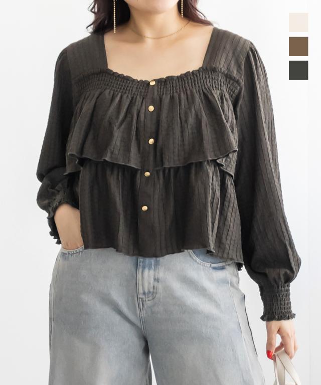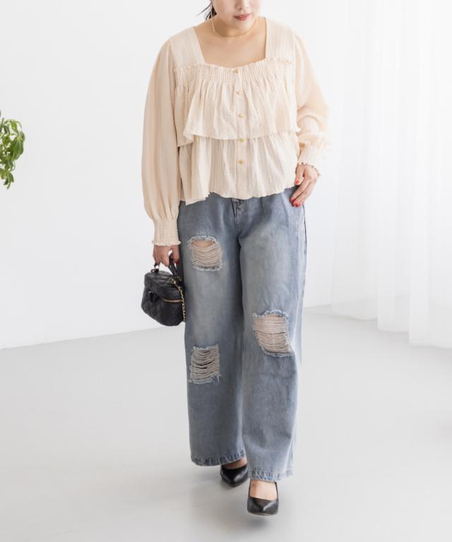 | 3Lサイズを着用して程よくゆとりを持って着られました!ピタッとせずに着られて、軽くてらくちん◎デコルテを綺麗に見せるスクエアネックと、メリハリのあるボタンデザインですっきり着やせした印象になれました♪生地自体も可愛いし、長袖なのでロングシーズン活躍します!デニムやスカート、どちらにも合わせやすくて、シンプルすぎず大人かわいく着こなせます! |