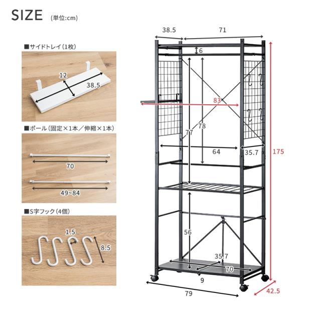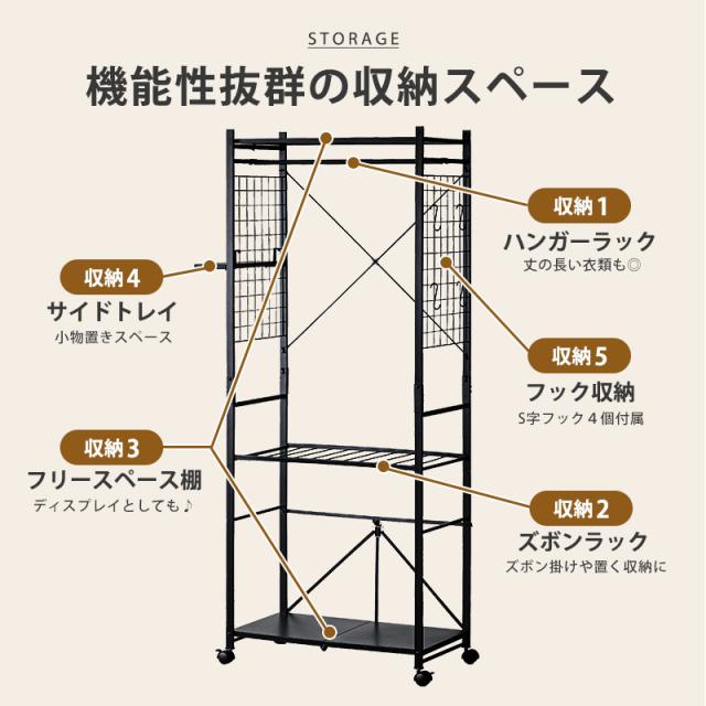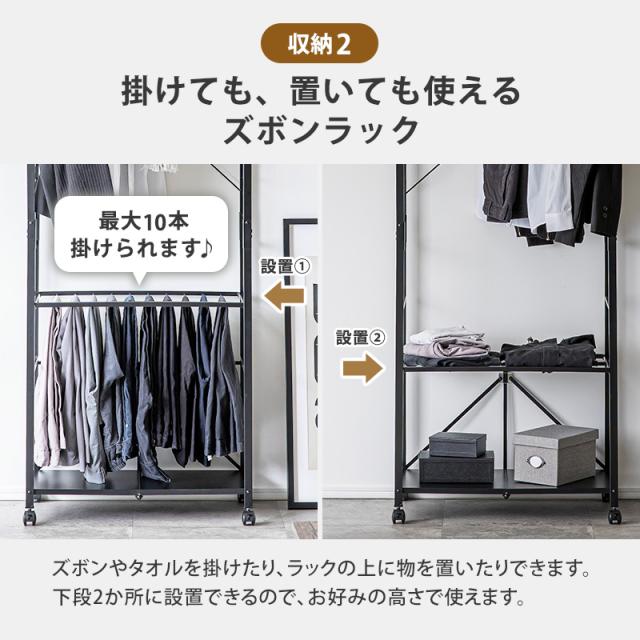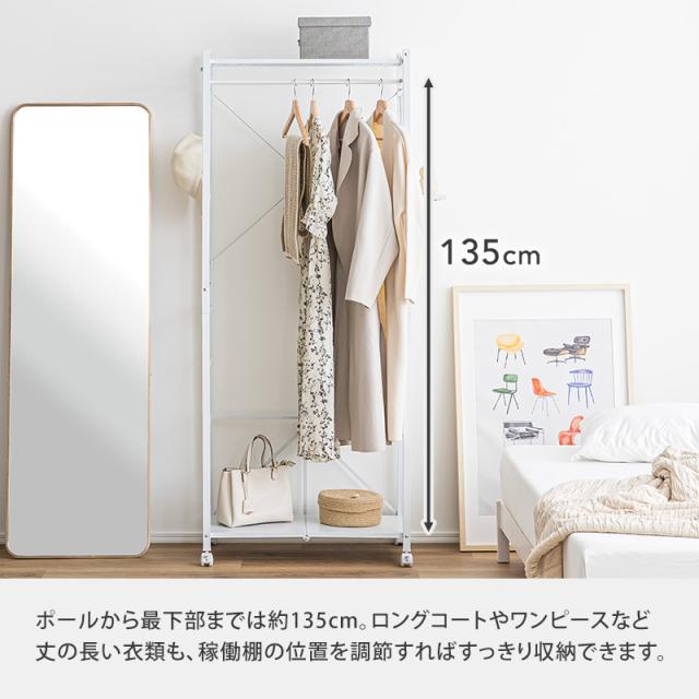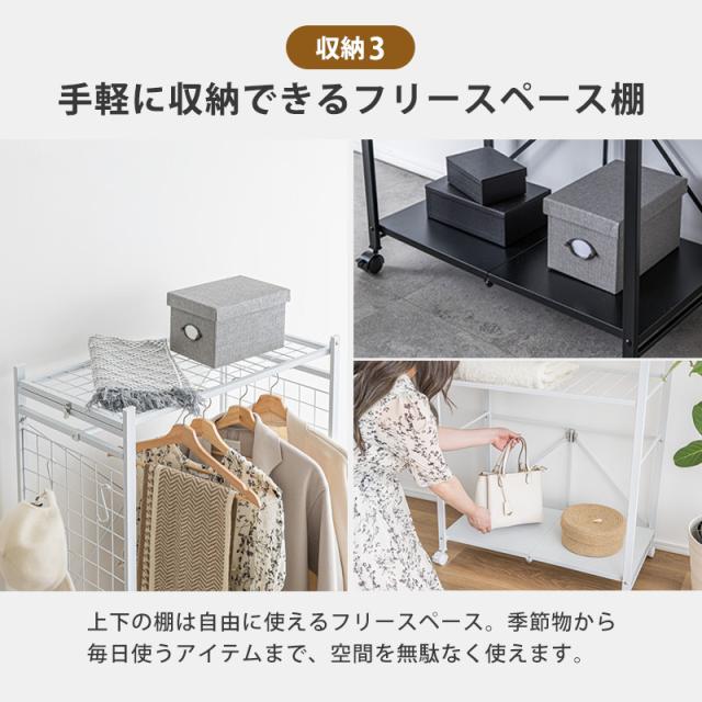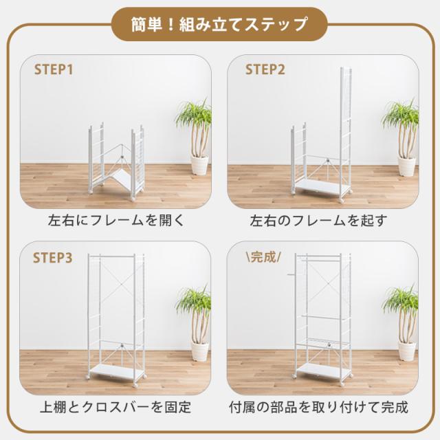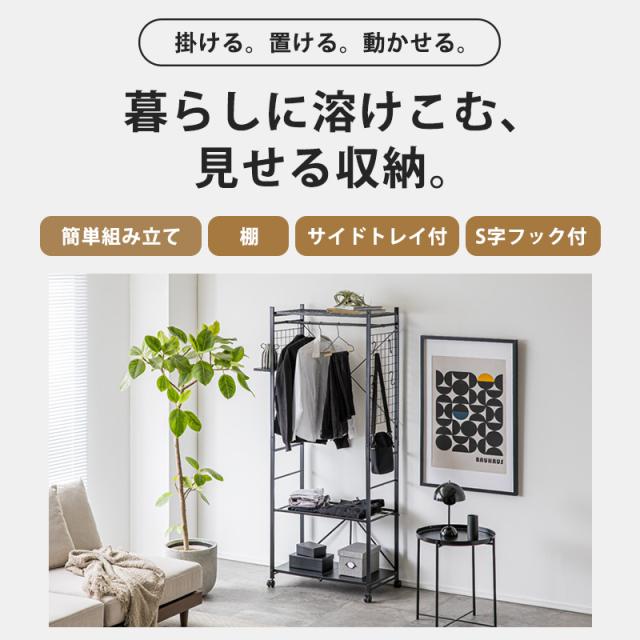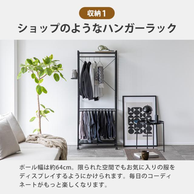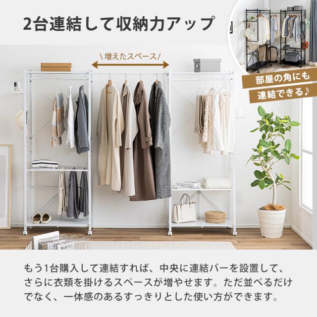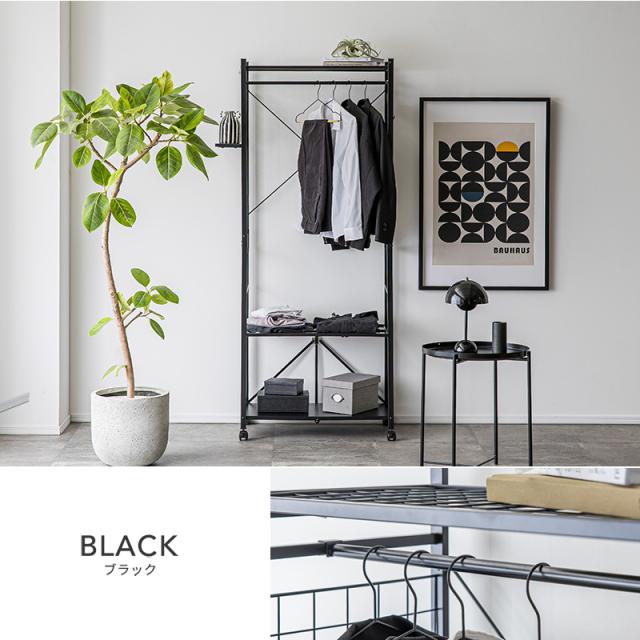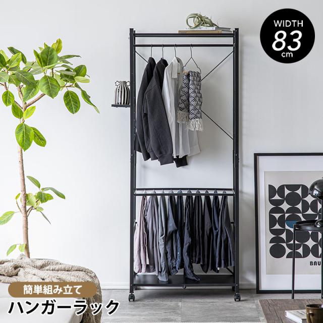 ハンガーラック 工具不要 簡単組み立て キャスター 幅83cm ブラック ホワイト ラック クローゼット オープンラック 衣類収納 収納 スリム 省スペース 一人暮らし