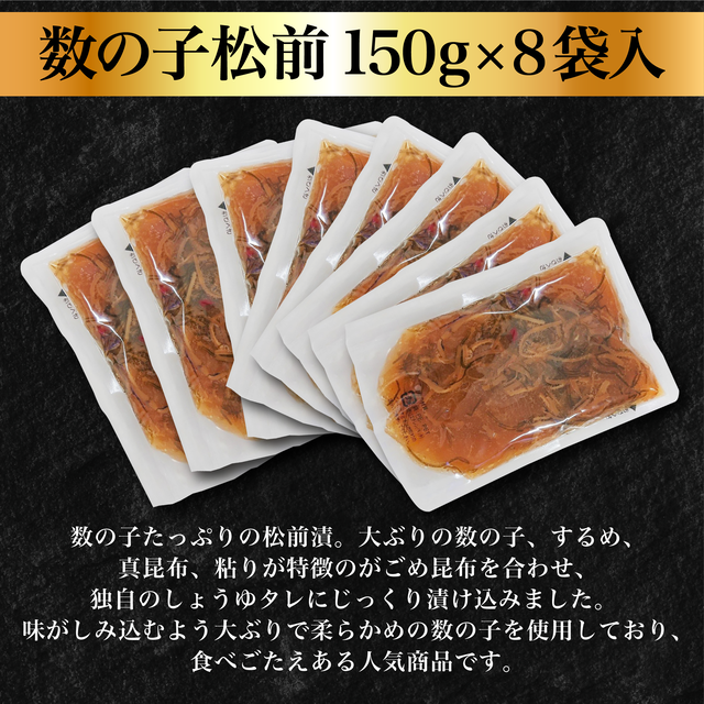 数の子松前 合計1,200g 150g袋×8 (一本羽) 【送料無料】|北海道 函館 お歳暮 お中元 2025 ギフト 贈り物 贈答