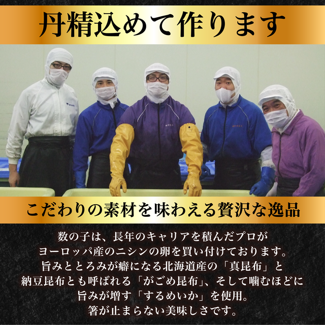 また、数の子は折れないように手作業で丁寧に作っております。