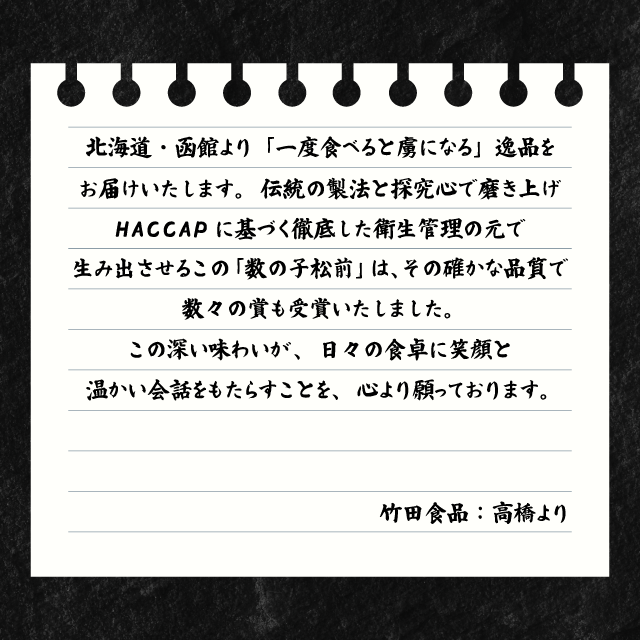 他の数の子松前とは一味違うこの味をご賞味下さい。