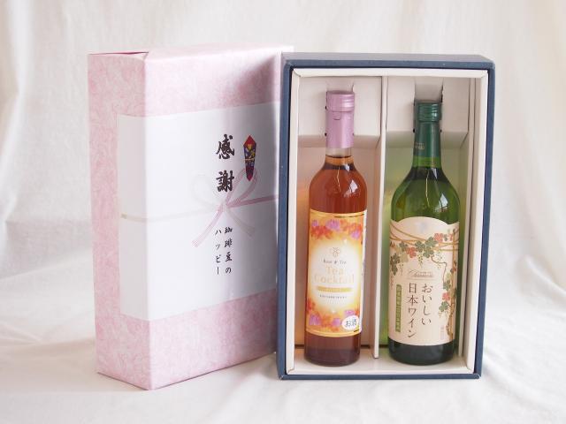 感謝の贈り物ボックス 紅茶カクテルと国産ワインセット(国産葡萄100%使用 おいしい日本ワイン 白ワイン やや辛口(山梨県)720mlティーカクテル ハニー7% 500ml