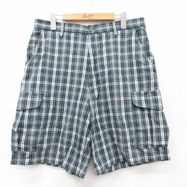 【商品名】 W33★古着 トミーヒルフィガー ブランド ショート カーゴ パンツ ショーツ メンズ 90年代 90s ワンポイントロゴ コットン 緑他 チェック