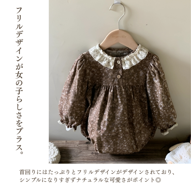 花柄 ロンパース 女の子 長袖 ベビー 長袖ロンパース コットン 綿 秋 冬 春 夏 可愛い 新生児 赤ちゃん ベビー服 キッズ ギフト プレゼント 出産祝い 外着 部屋着 お出かけ レース フリル 66cm 73cm 80cm 90cm お揃い 姉妹 0歳 1歳 2歳