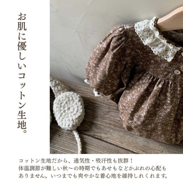 首元には繊細なレースフリルがあり、女の子の可愛らしさを演出。