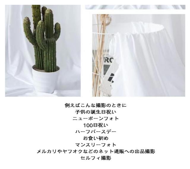 | 【140cm×200cm】 撮影用ホワイト背景! 広げるだけで簡単におうちスタジオが完成 綺麗に撮影できるからSNS映えする写真が撮れる あかちゃんのハーフバースデーにも◎ 固定用のクギ付き! 大きな一枚布のバックスクリーンで撮影スタジオに早変わり! SNSで日常のありふれたものを撮影して投稿したい時や オンラインで商品を売りたいときに少しでも 綺麗な写真を取りたいと思っても なかなか難しい...というあなたにホワイトの撮影用背景布はおすすめです! 例えばこんな撮影のときに 子供の誕生日祝い ニューボーンフォト 100日祝い ハーフバースデー お食い初め マンスリーフォト メルカリやヤフオクなどのネット通販への出品撮影 セルフィ撮影 | |