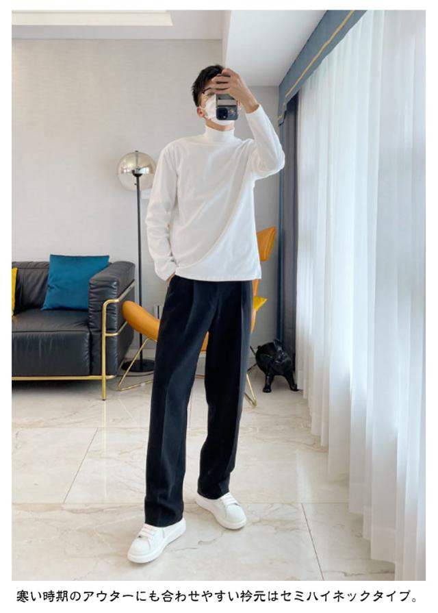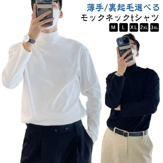 | 【薄手/裏起毛選べる】【M−3XL】【モックネックtシャツ】 秋冬のコーディネートには何かと欠かせないインナーです。 寒い時期のアウターにも合わせやすい衿元はセミハイネックタイプ。 高くなりすぎない絶妙なネック幅でアウターとのコーディネートも相性バツグンです! とてもなめらかなスムース素材でできているので、肌触りも抜群! Tシャツ感覚で着られるので、シャツやジャケットのインナーにすっきりキマります。 何かとコーディネートに役立ちそうな心強い一着になりそうです! ややゆったりシルエットなので1枚で着てもそれだけでサマになってしまいます! | |