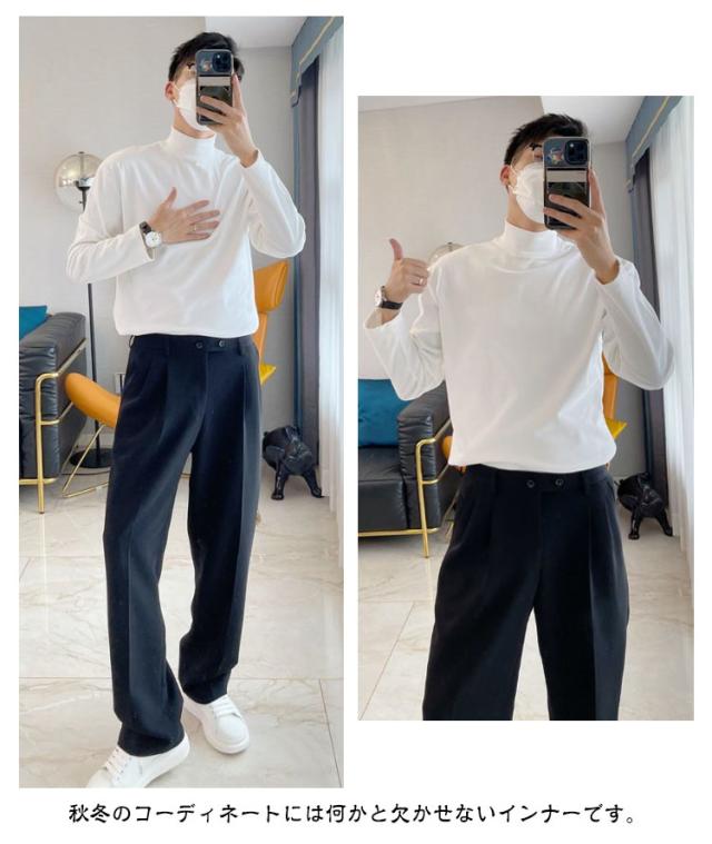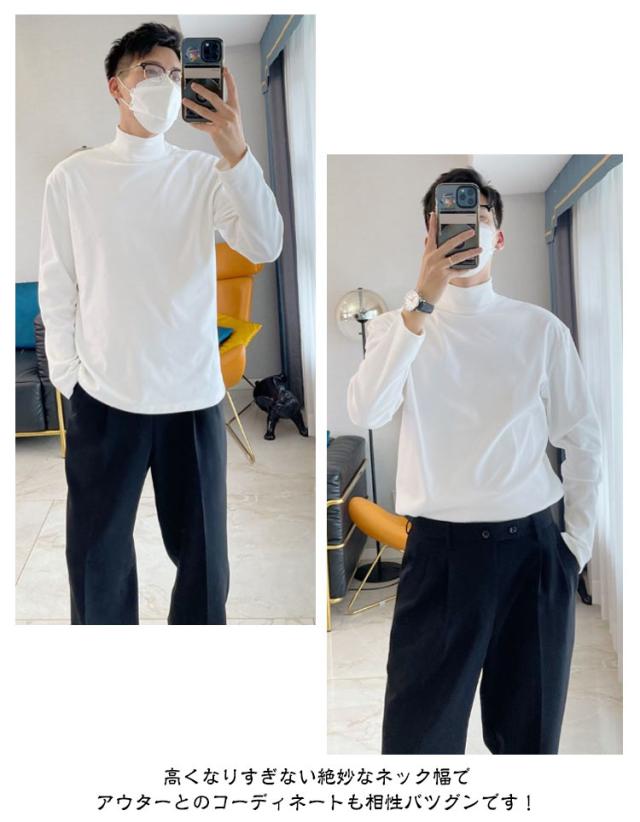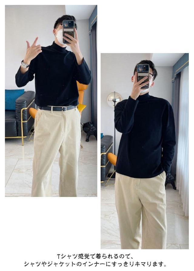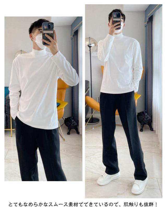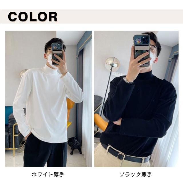 長袖tシャツ モックネック メンズ ロンt 長袖 tシャツ カットソー ハイネック インナー ロングtシャツ 春 秋 冬 ロングスリーブ トップス 2タイプ ゆったり 男性 秋服 秋物 無地 シンプル 大きいサイズ 黒 白