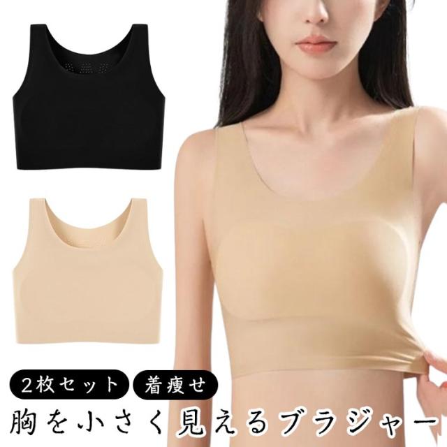 胸を小さく見えるブラジャー ナベシャツ コスプレ スポーツブラ ノンワイヤー 2枚セット シームレス 補正下着 着痩せ 大きいサイズ ストレッチ レディース 和装ブラ ブラジャー 揺れない インナー 肌着 ブラトップ タンクトップ 脇肉 快適 送料無料