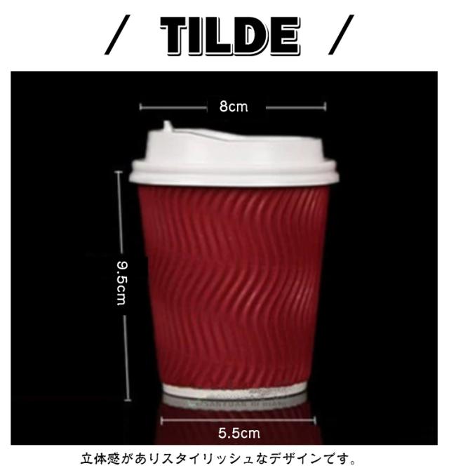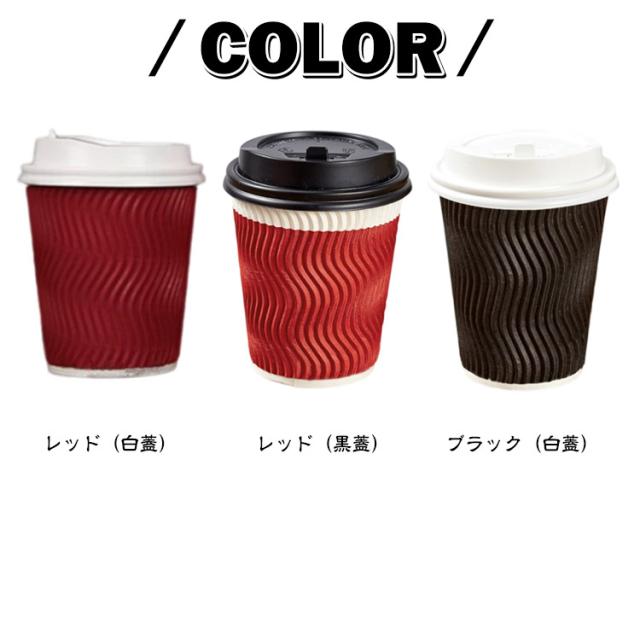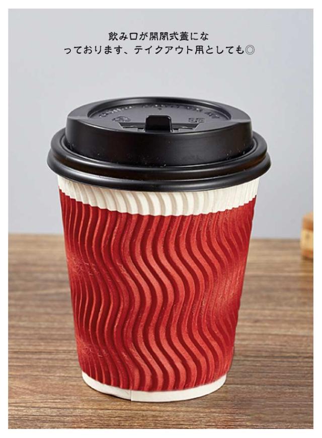 紙コップ 耐熱 8オンス 250ml 二重構造 厚 50個セット 開閉式 フタ付き 蓋付き 耐熱紙コップ 凸凹加工 断熱 使い捨て コップ オフィス コーヒーカップ カフェ ドリンク ブラック 黒 レッド おしゃれ スタイリッシュ かわいい