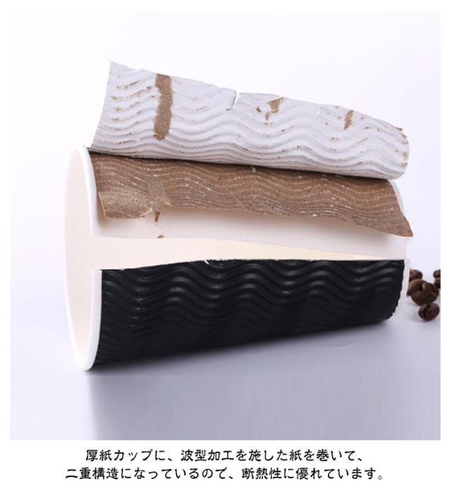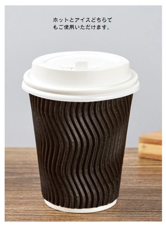 | 表面凹凸加工した2重構造で熱い飲み物も持ちやすい紙コップ。【8オンス 50個セット】【フタ付き】 厚紙カップに、波型加工を施した紙を巻いて、二重構造になっているので、断熱性に優れています。 立体感がありスタイリッシュなデザインです。 飲み口が開閉式蓋になっております、テイクアウト用としても◎ ホットとアイスどちらでもご使用いただけます。 | |