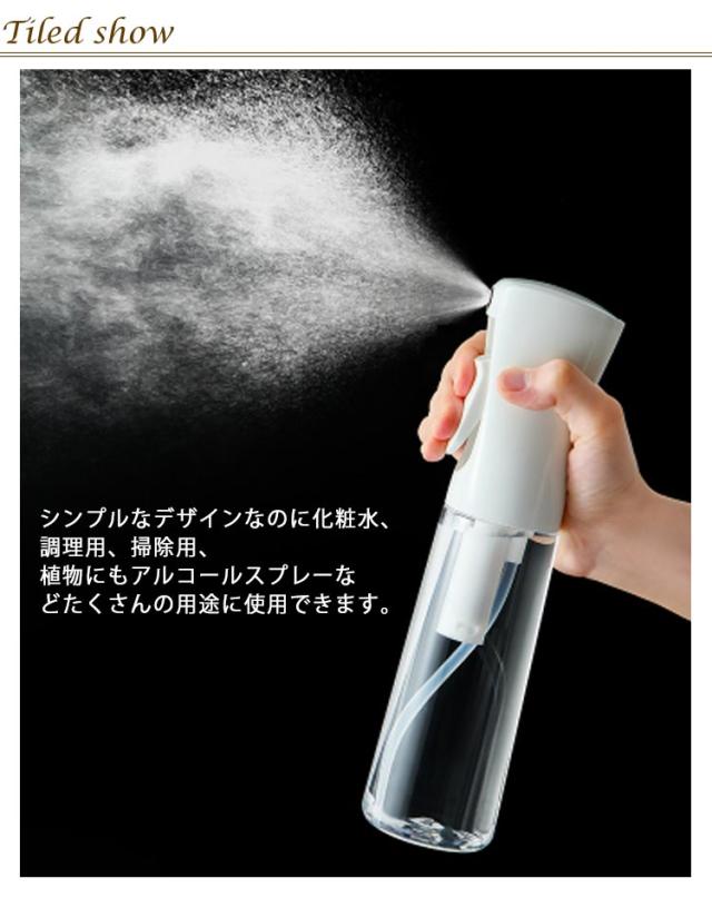 | ミストが細かい 大容量 4本セット スプレーボトル シンプルなデザインなのに化粧水、調理用、掃除用、植物にもアルコールスプレーなどたくさんの用途に使用できます。 ワンプッフで感じることができます。 マイクロミストで霧吹きの概念が変わります。 | |