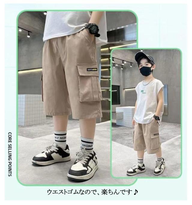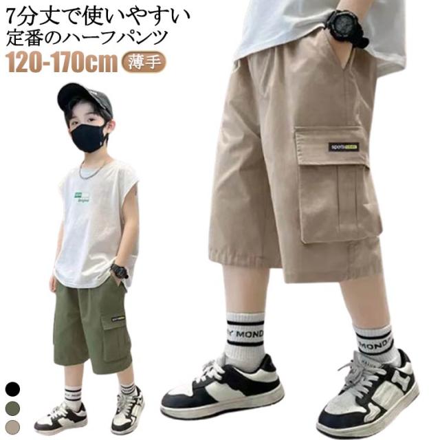 カーゴパンツ 夏 7分丈 七分丈 男の子 カーゴパンツ ウエストゴム パンツ イージーパンツ 子供服 薄手 半ズボン 子ども 小学生 おしゃれ カジュアル ボトムス ハーフパンツ キッズ 幼稚園 小学校 公園 散歩 120 130 140 150