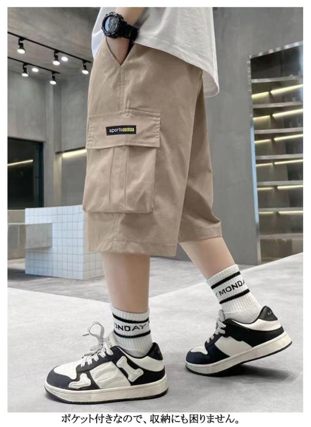 おしゃれ 薄手 公園 カーゴパンツ カジュアル キッズ カーゴパンツ 夏 ウエストゴム 子供服 子ども 半ズボン 七分丈 ボトムス 7分丈 カーゴパンツ 男の子 イージーパンツ ハーフパンツ 幼稚園 小学校 小学生 散歩 120 130 140 150