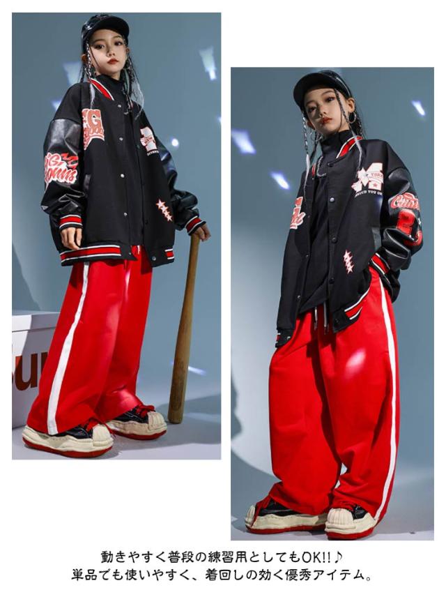 ヒップホップ ダンス衣装 キッズ ワイドパンツ セットアップ 黒 ジャケット 男の子 ズボン スタジャン ロングパンツ スウェットパンツ スタジャン 女の子 Tシャツ かっこいい スタジャン HIPHOP 子供服 ジャズダンス