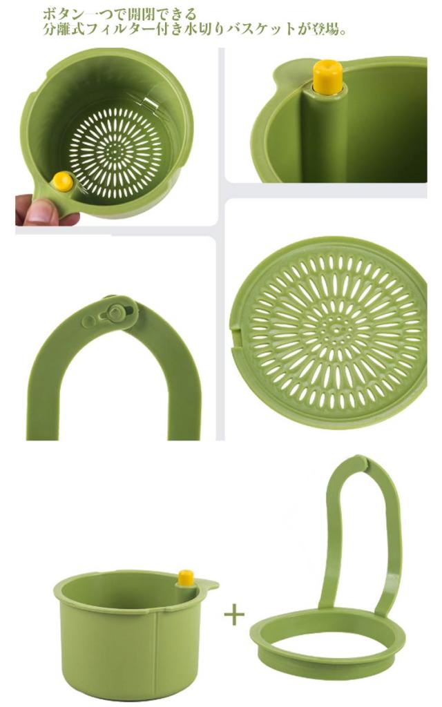 | 取り付け簡単な水切りカゴです。シンク用 吊り下げ水切りバスケット。 排水・ゴミの分別!多機能収納!「残渣の処理が面倒」「手を汚したくない」そんなお悩みに! ボタン一つで開閉できる分離式フィルター付き水切りバスケットが登場。 キッチンのシンクに簡単取り付けでき、茶がらや野菜くず、果物の水切りにも便利な多機能収納アイテムです。 ワンプッシュ開閉で手を汚さない。底部のボタンを押すだけでカバーが開閉し、ゴミを直接手で触れることなく簡単に処理可能。 吊り下げ式で省スペース。蛇口に簡単設置できるフック付き。使わないときは取り外してスッキリ収納。 細かいメッシュでしっかり濾過!茶葉・米粒・野菜くずなどの細かいゴミも逃さずキャッチし、水はスムーズに排水。 キッチン・バスルーム両用!シンクの残渣処理!果物や野菜の水切り!洗面所の小物入れや一時置きとしても◎ | |