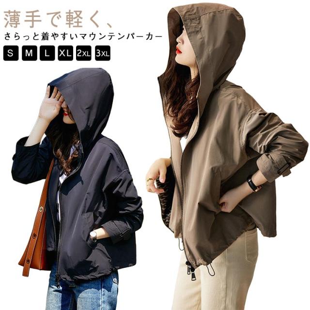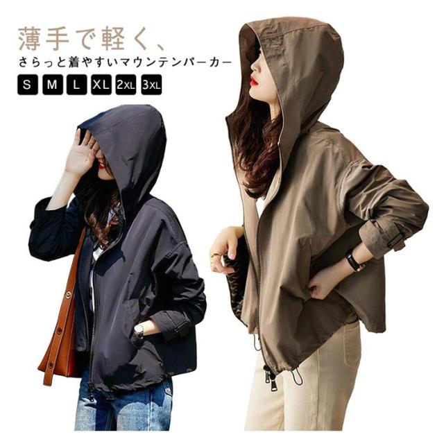 レディース ジャケット ライトアウター ショート丈 マウンテンパーカー パーカー ブルゾン 大人 薄手 きれいめ マウンテンパーカー ジップアップ おしゃれ 長袖 ライトジャケット 体型カバー ゆったり カジュアル 防水 春夏 春 夏 秋