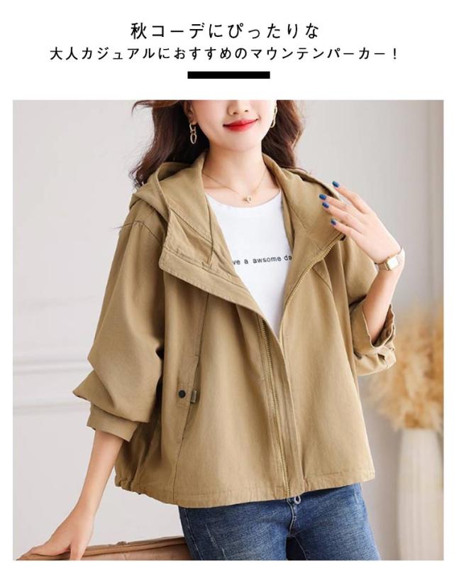 アウター マウンテンパーカー ブルゾン 秋 ライトアウター 春 モッズコート レディース フード付き 体型カバー パーカー スプリングコート ショート丈 マウンテンパーカー ビッグシルエット 大きいサイズ 大人 羽織り カジュアル ゆったり