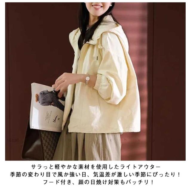 マウンテンパーカー アウター 春 ウインドブレーカー ナイロン パーカー 秋 ショート丈 ジップアップ UVパーカー マウンテンパーカー 秋コート ミリタリージャケット マウンテンパーカー ライトアウター 薄手 レディース ボリューム袖