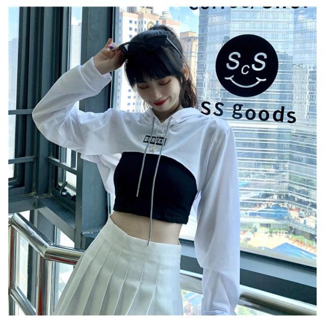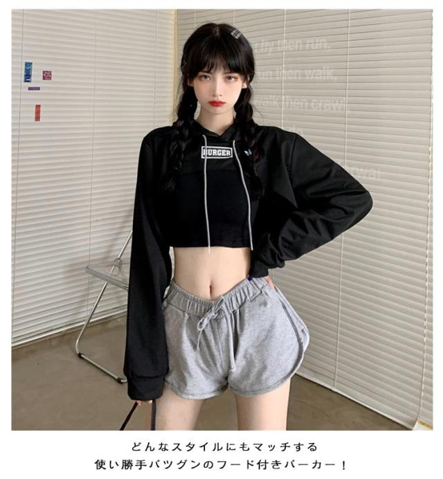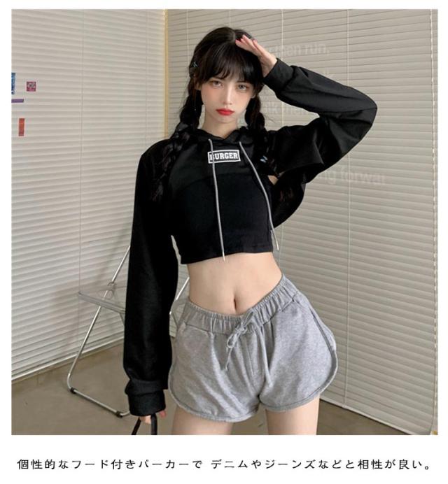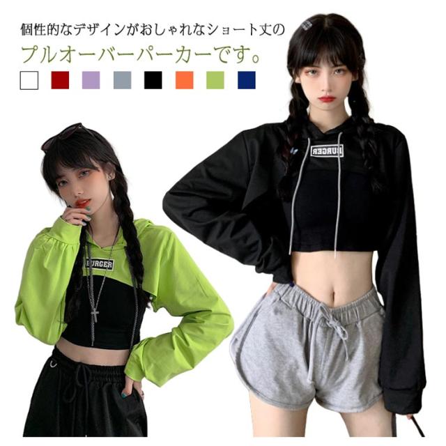 春 ヒップホップ プルオーバー レディース ダンス衣装 パーカー へそ出し トップス 薄手 hiphop ショート丈パーカー フード付き ジャズ 女性用 トレーナー 長袖 へそ出しパーカー 夏 秋服 ストリート系 原宿系