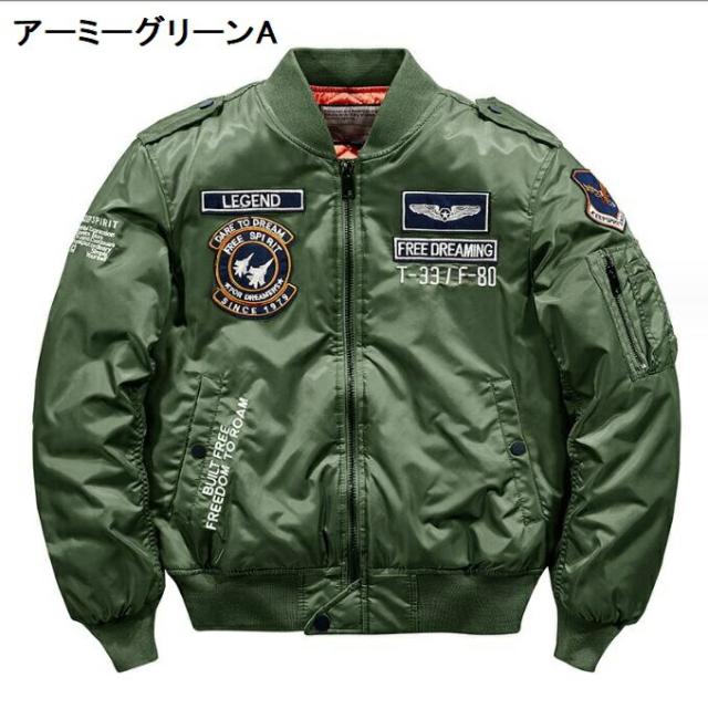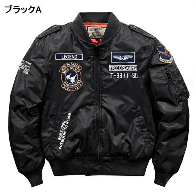 2TYPE メンズ フライトジャケット ジャンパー 厚手 冬 ミリタリー 空軍ジャケット ブルゾン 刺繍ワッペン スタジャン 秋 中綿入り コート 細身 保温 防寒着 アウタ おしゃれ