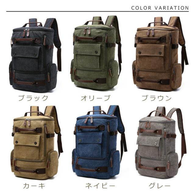 リュック リュックサック キャンバス バックパック デイパック ビジネス カジュアル ジム バッグ カバン かばん メンズ ズック スクエア ザック トラベル 大きめ PC入れ ポケット多数 手提げ 手持ち 鞄 大容量 復古 無地 通勤 通学 男子 高校生 大人 出張 遠足 運動 登山 合宿 人気 多収納 縦型 軽量 丈夫 上質