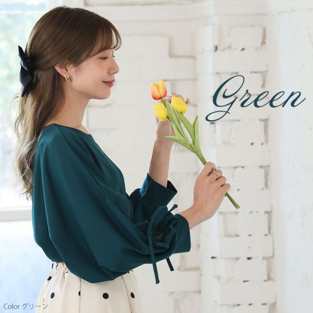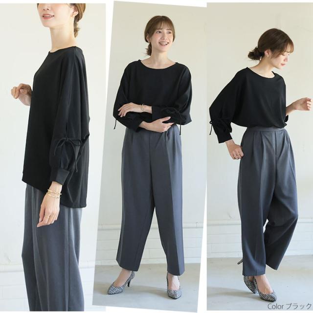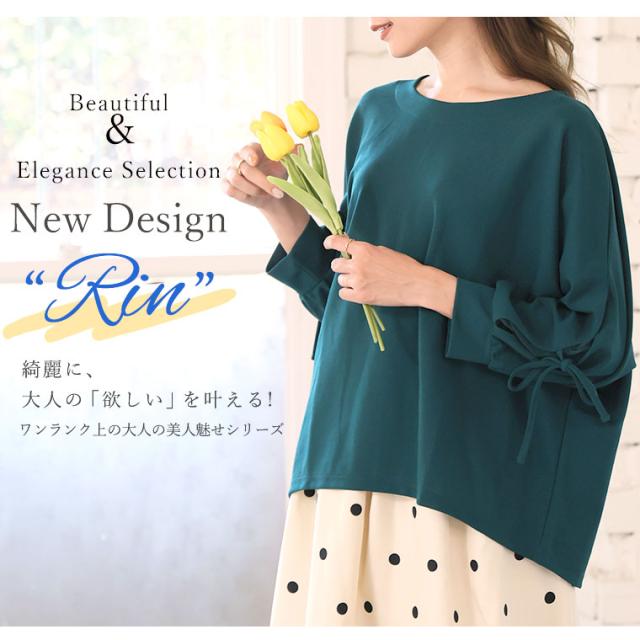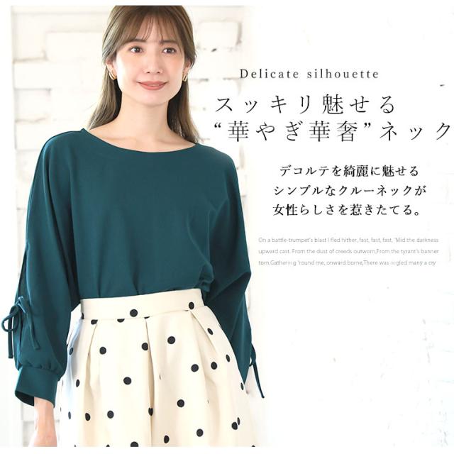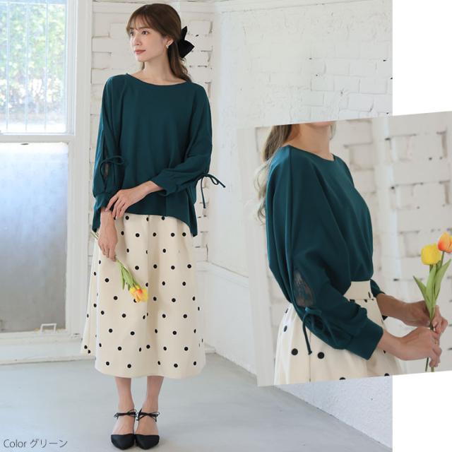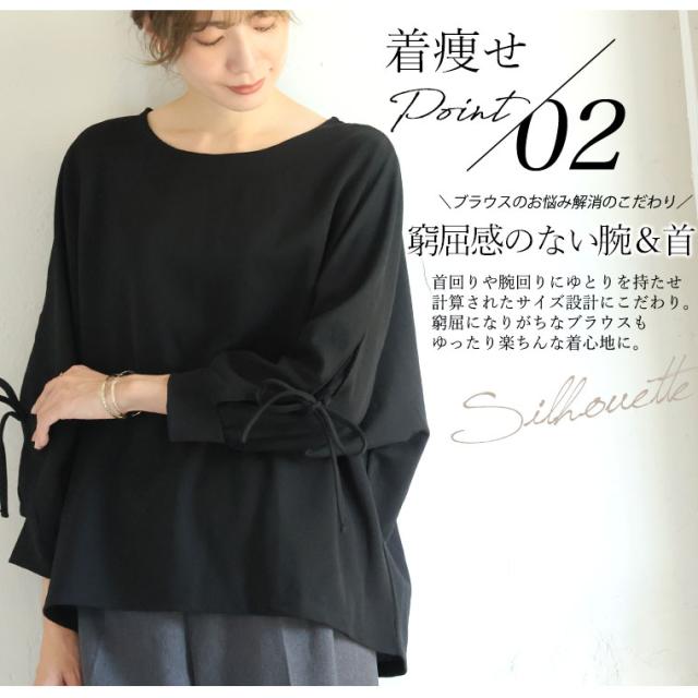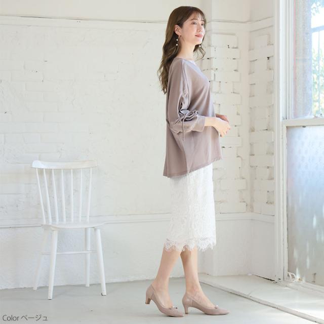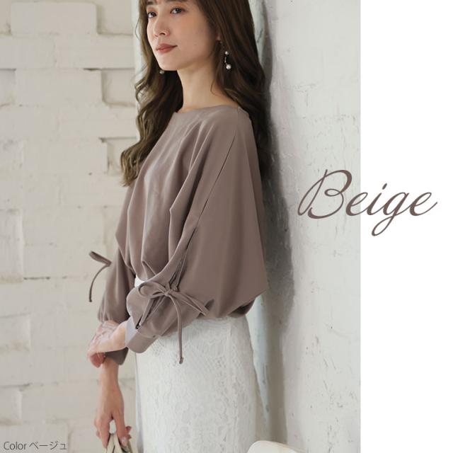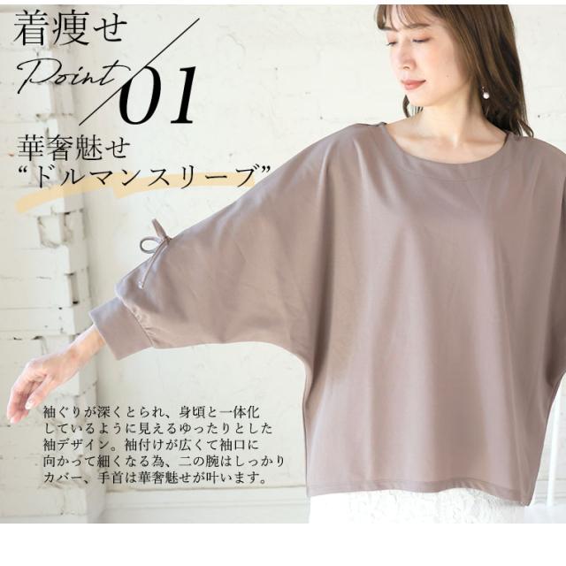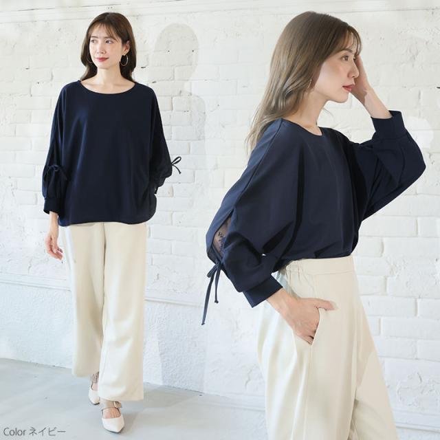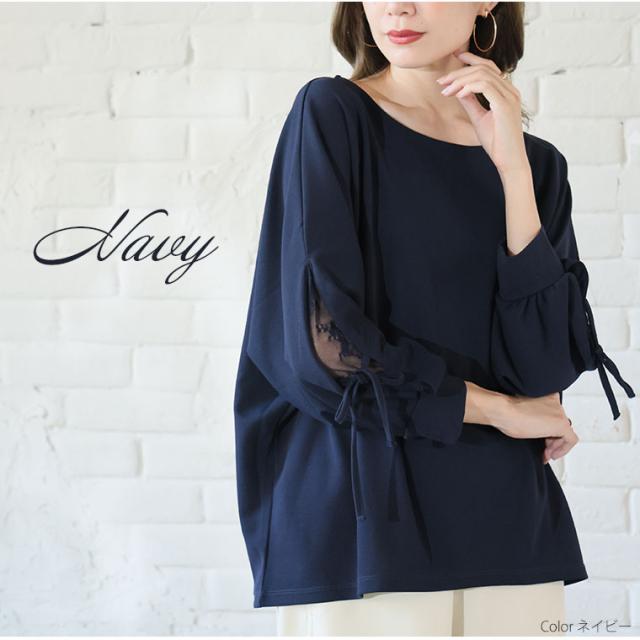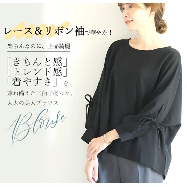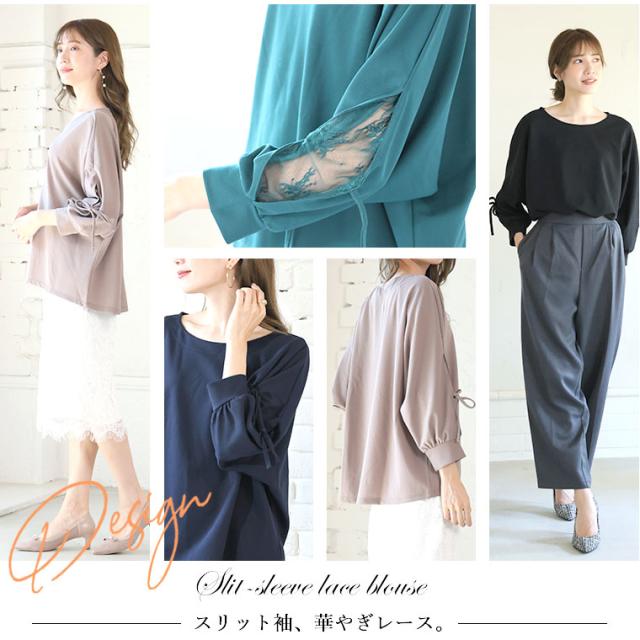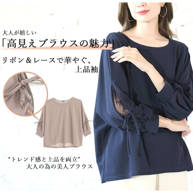 上品に華やぐ袖レースデザインドルマンブラウス
