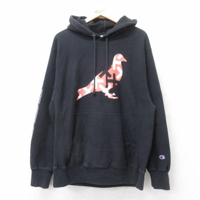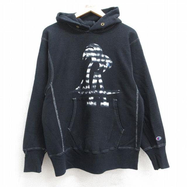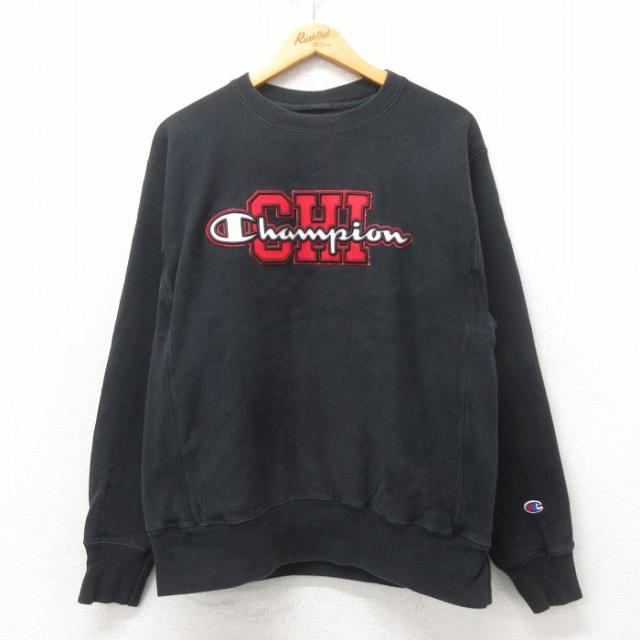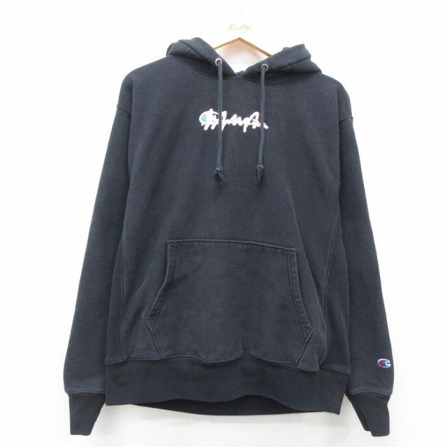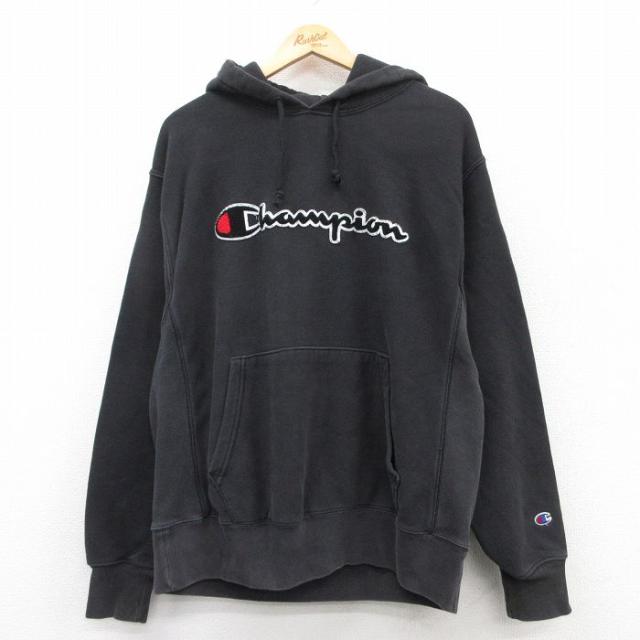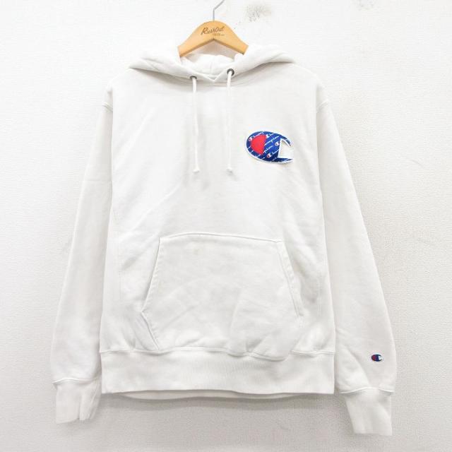 古着 長袖 チャンピオン Champion リバースウィーブ パーカー メンズ ビッグロゴ マルチカラー グレー 霜降り Lサイズ 中古 ス 中古 古着