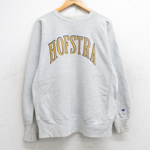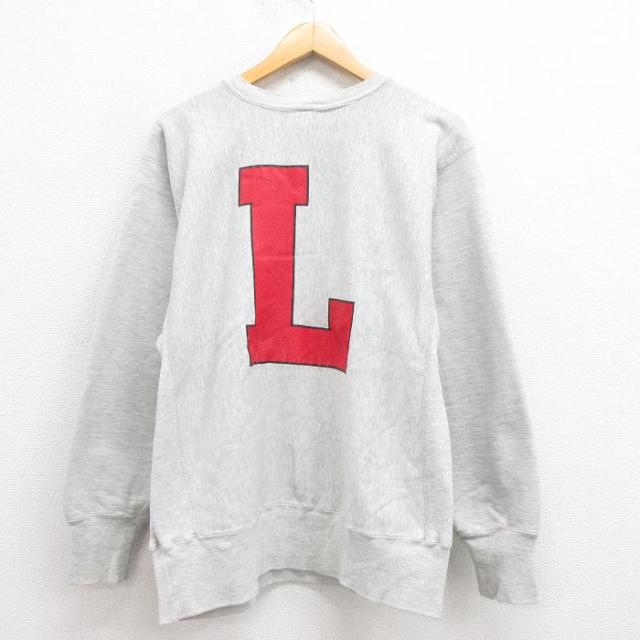 【商品名】 L★古着 長袖 チャンピオン Champion リバースウィーブ パーカー メンズ ビッグロゴ マルチカラー グレー 霜降り
