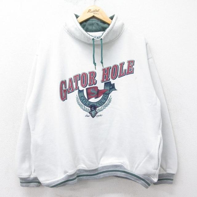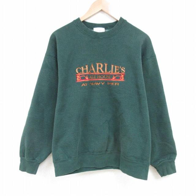 【商品名】 L★古着 ゲス GUESS 長袖 スウェット メンズ 90年代 90s ビッグロゴ 刺繍 ボロ モックネック ハイネック USA製 緑