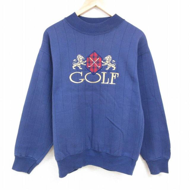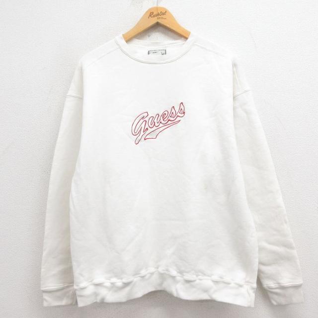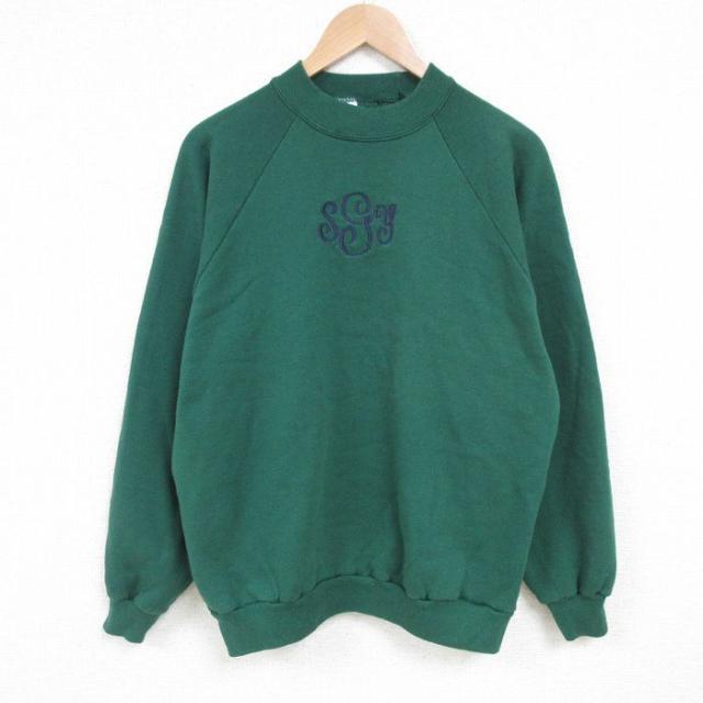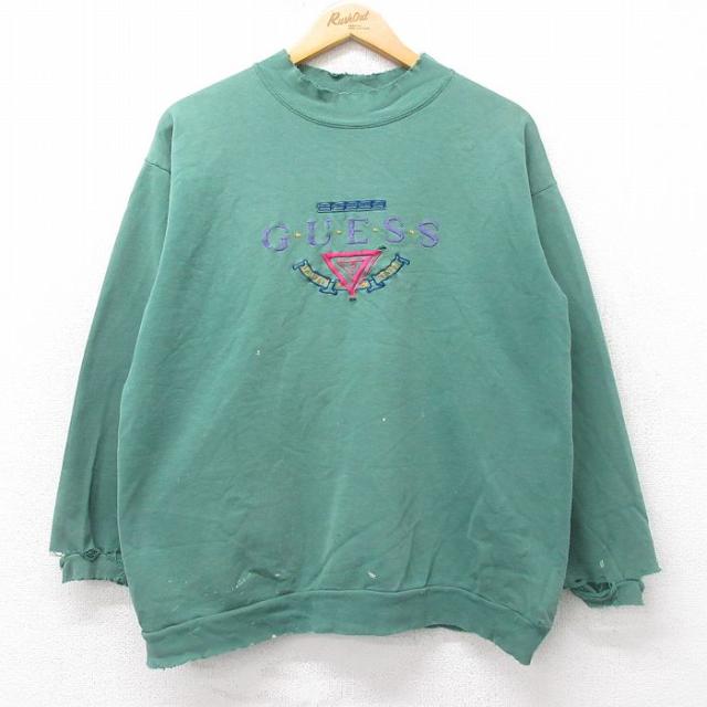 古着 ゲス GUESS 長袖 スウェット メンズ 90年代 90s ビッグロゴ 刺繍 ボロ モックネック ハイネック USA製 緑 グリーン Lサイ 中古 古着