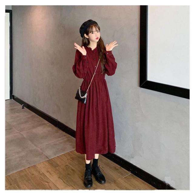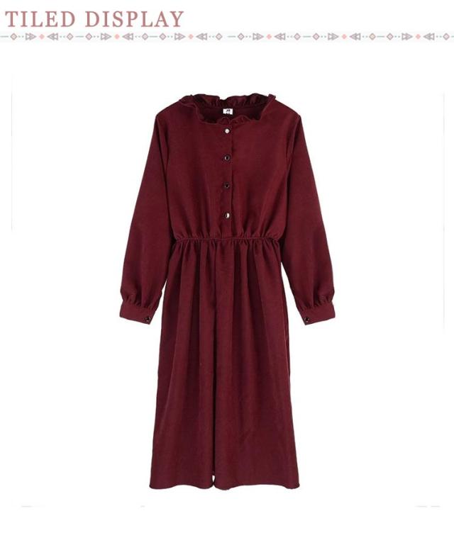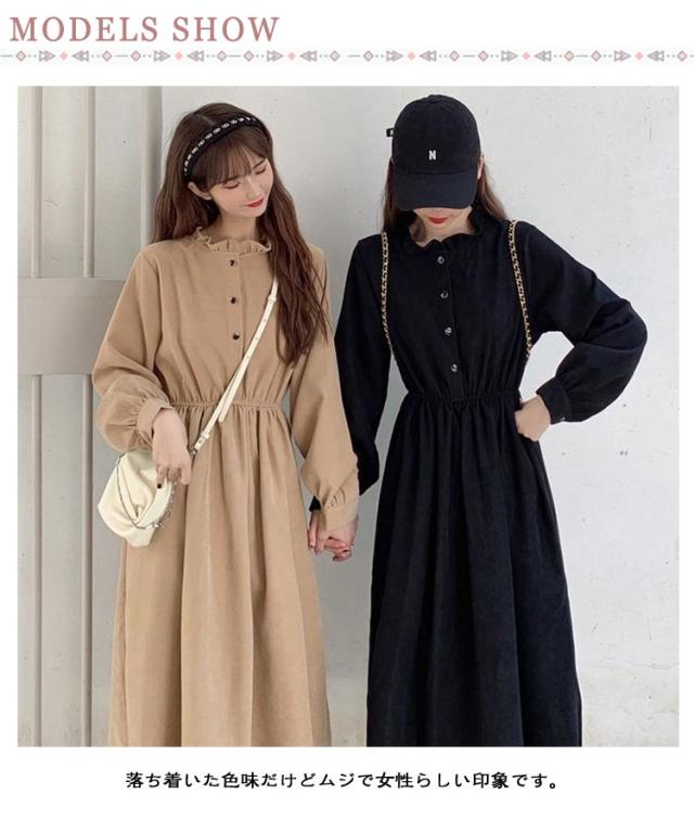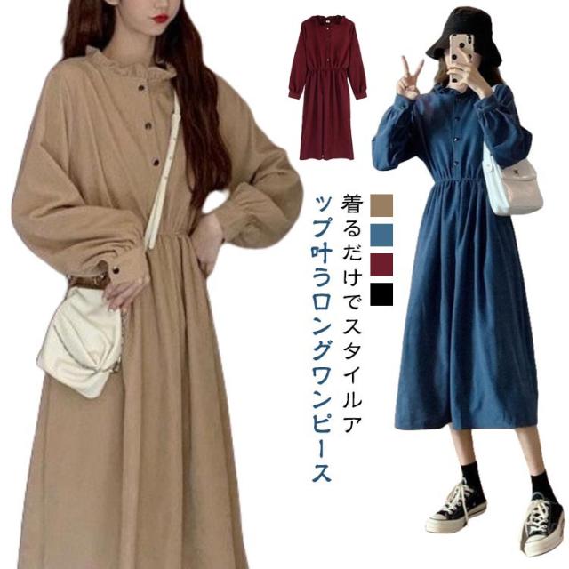 無地 ロングワンピース ワンピース ロング レディース きれいめ 秋 薄手 エレガント きれいめ フロントボタン きれいめ フェミニン シンプル おしゃれ 体型カバー お呼ばれ 袖あり 長袖 ウエストマーク パーティー ワンピース フォーマル