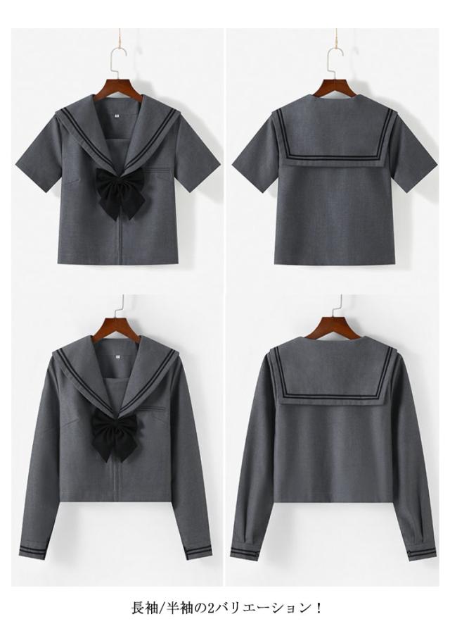 ハロウィン 半袖セット セーラー服 グレー 学生服 ミニスカート セーラー服 長袖セット 可愛い 制服 上下セット リボン付き 女子JK制服 高校生 学園祭 大人 レディース コスチューム衣装 リボン 女子高生 大きいサイズ