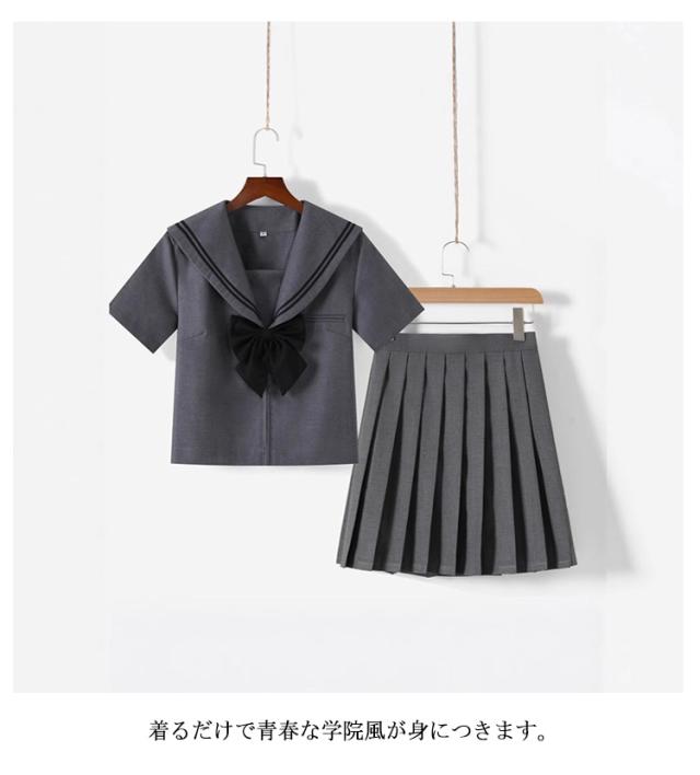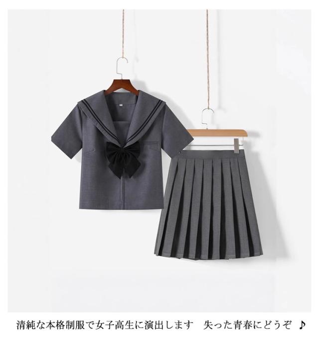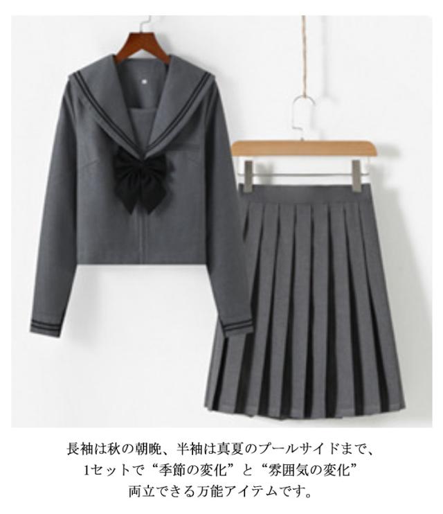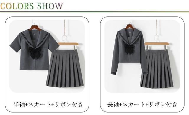 可愛い セーラー服 半袖セット ミニスカート レディース 学生服 プリーツスカート 上下セット 制服 グレー 長袖セット リボン付き ハロウィン 高校生 学園祭 大人 セーラー服 コスチューム衣装 リボン 女子高生 大きいサイズ