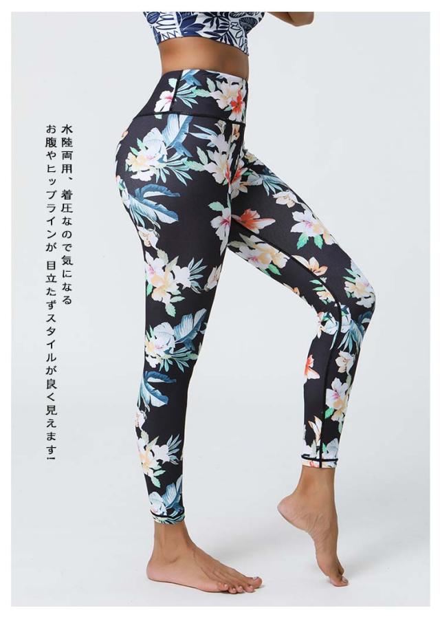 | 気分が上がる華やかレギンス! 伸縮性の良い素材を使用。 優しくフィットして包み込んでくれます。 吸汗・速乾でさらりと気持ちイイはき心地! 汗によるベタつきを軽減します。 水陸両用、着圧なので気になるお腹やヒップラインが 目立たずスタイルが良く見えます! ヨガ、ピラティス、SUP、ランニング、プール、ビーチ、トレーニング、筋トレ、ウォーキング、ダンス、テニス等、いろいろなスポーツに大活躍のアイテムです。 簡単にコーディネイトが決まります。 普段使いにもOK。 | |