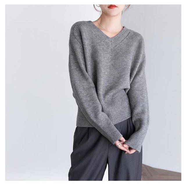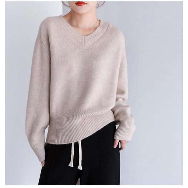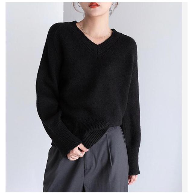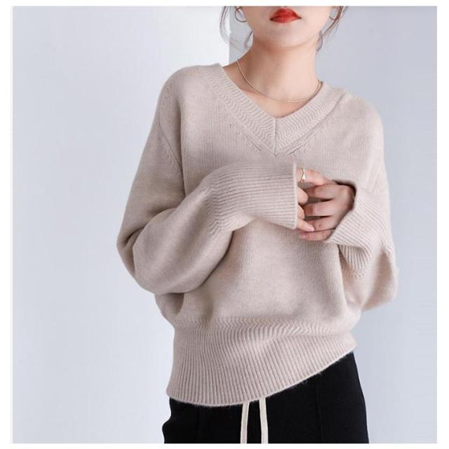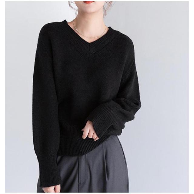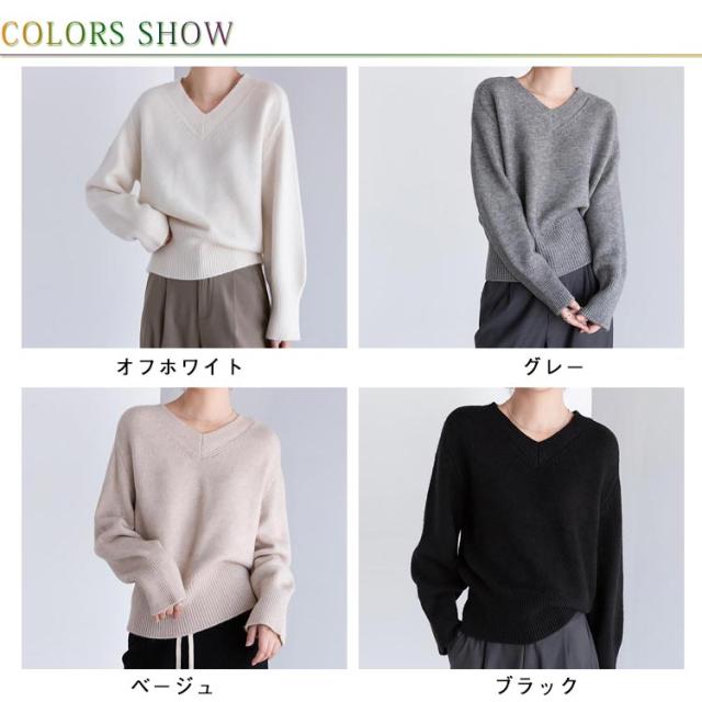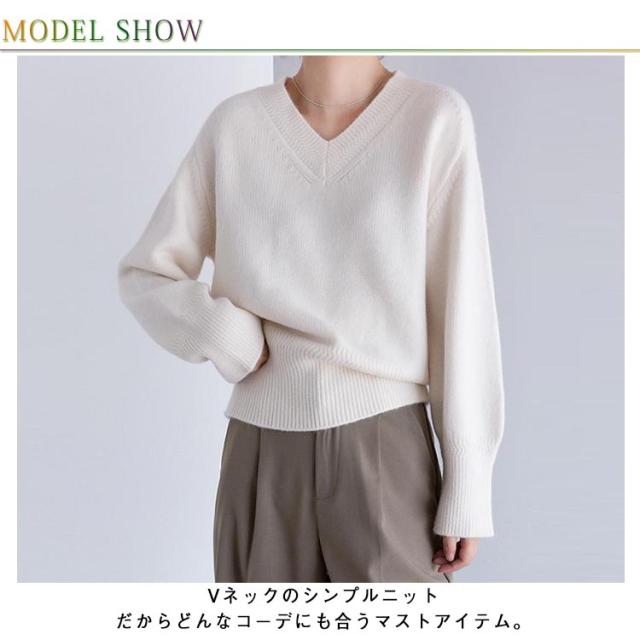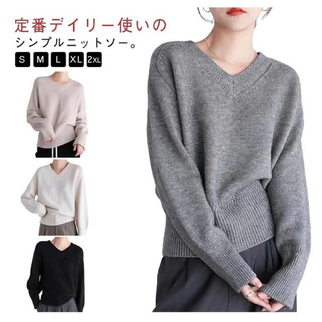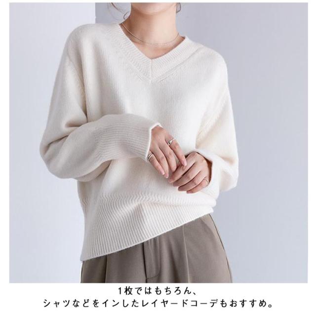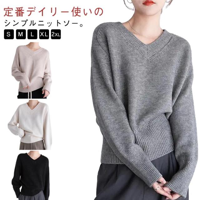 Vネック プルオーバー ニット 秋冬 セーター レディース セーター トップス ゴルフウェア 体型カバー 長袖 ニット きれいめ ニットトップス ゆったり 暖か 通勤 通学 無地