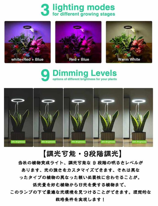 植物育成ライト 高さ調節可能 植物ライト 観葉植物ライト 低消耗 LED タイマー 9段階の調光 植物育成ライト 省エネ 室内栽培ライト 太陽光模擬 室内栽培用 苗木栽培