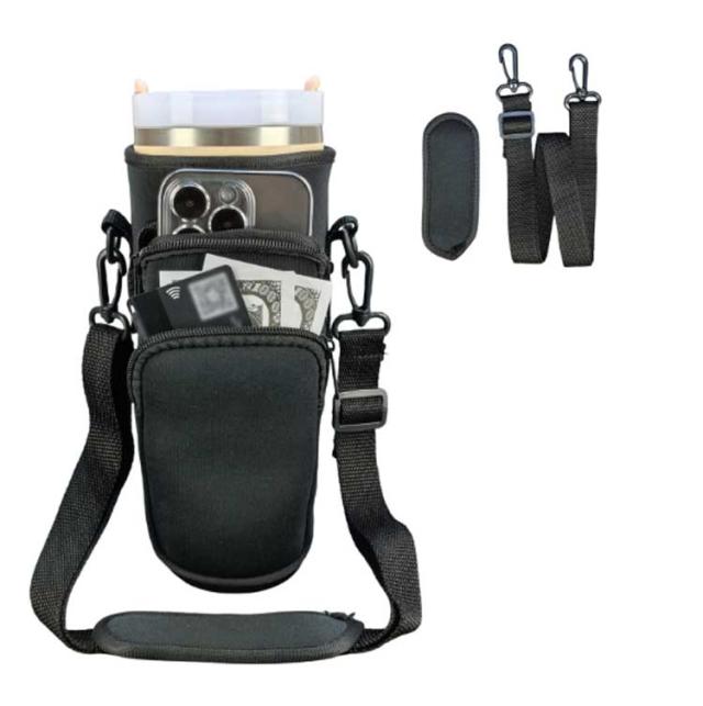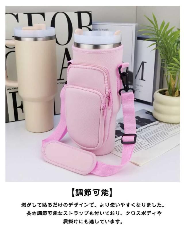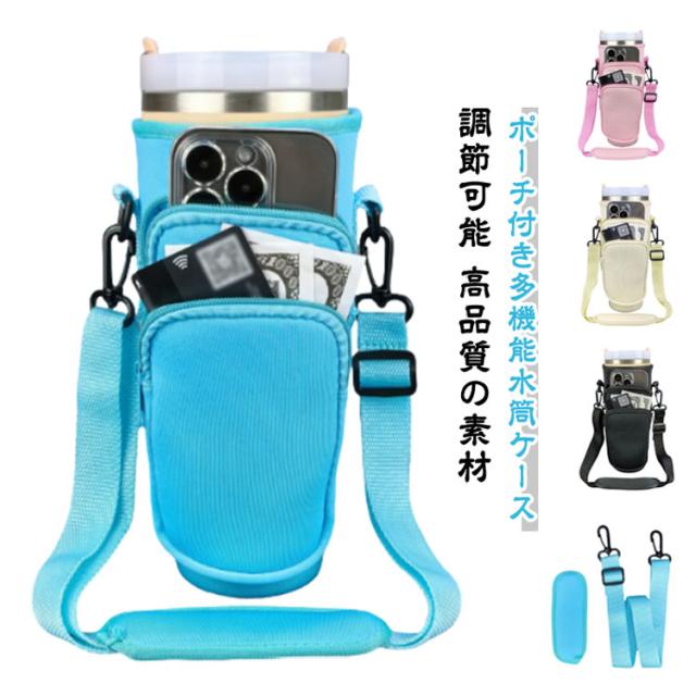 ショルダー水筒カバー 保冷 水筒ケース ポーチ付き ペットボトルカバー カード収納 スマホショルダー スタンレー用カップホルダー 保温 長さ調節 ボトルストラップ ペットボトルケース 斜めかけ 肩掛け 子供 大人