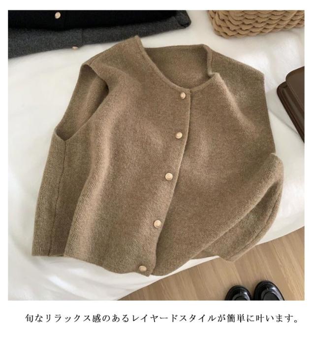 ニットベスト 前開き 軽量 ベスト トップス 春 春秋 シンプル きれいめ レディース 袖なし 無地 かわいい カジュアル ベスト 冬 オフィスウェア 重ね着 おしゃれ 秋 レイヤード 無地 シンプル 防寒 柔らかい 大人