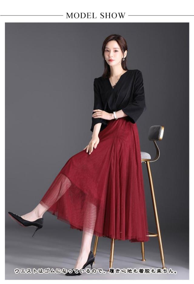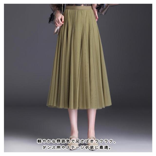 チュールスカート ウエストゴム スカート ダンス衣装 Aライン ボトムス フレア 720度 スカート フレアスカート ロングスカート スカート ロング丈 膝下丈 ひざ下丈 レディース マキシスカート ゆったり 広がる ハイウエスト 無地 ステージ衣装 春 夏 秋 冬