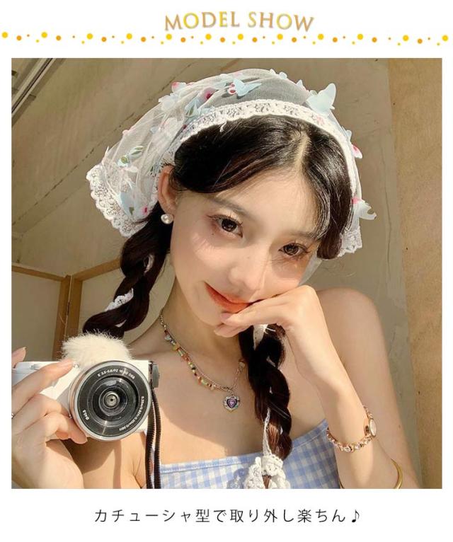 2枚セット レース 帽子 レディース 夏 蝶 三角巾 旅行 カチューシャ 春 かわいい 可愛い ヘアアレンジ ヘアバンド バンダナ バブーシュカ 小顔効果 シアー 無地 シンプル ヘアターバンヘアアクセサリー おしゃれ 透け感 カジュアル プレゼント ギフト 10代 20代 30代