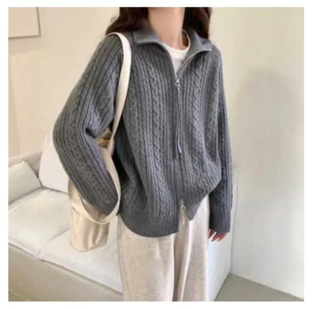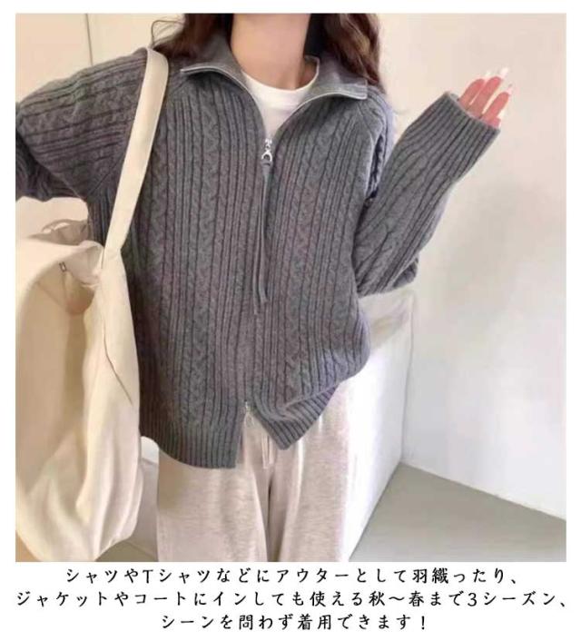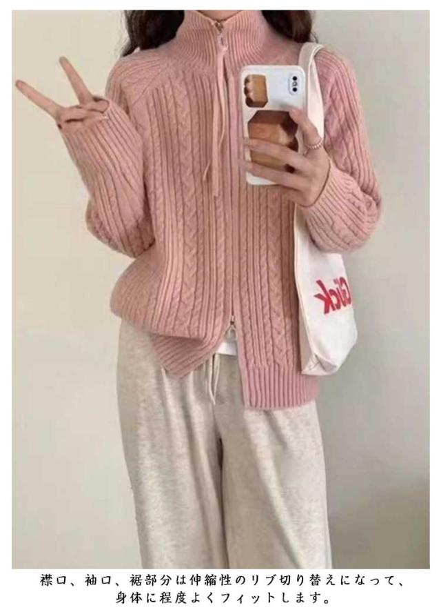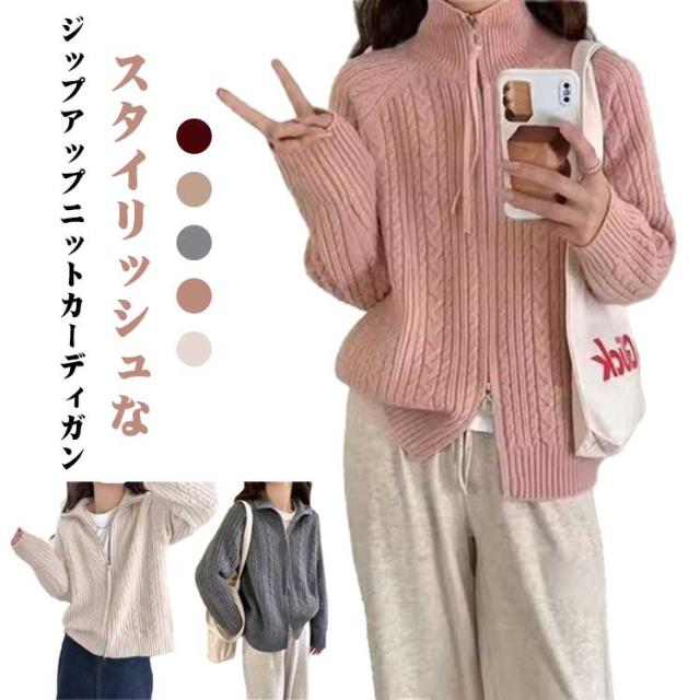 ジップアップ 立ち襟 ニットパーカー ジップアップ 大きいサイズ ハイネック セーター 秋冬 カジュアル おしゃれ ニット カーディガン レディース 長袖 おしゃれ ジャケット 着?せ 暖かい 大人女性 スタンドカラー ギフト プレゼント