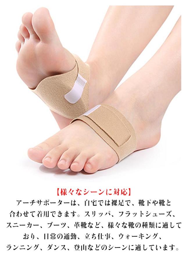 | 扁平足 サポーター1足組2個入り。 【ジェルサポート】約1.3cmの厚さの内側のジェルパッドは、扁平足やハイアーチなどの足の悩みを効果的にサポートします。足裏の筋肉を持ち上げ、アーチを直接圧迫することで、足裏をしっかりと支え、足の疲労を軽減します。 【高品質素材】シリコン素材を使用し、通気性に優れた包帯デザインを採用。足に締め付け感を与えません。同時に、優れた弾力性が足を完璧に包み込み、快適なフィット感を実現します。 【マッサージのような体験】着用すると、高さのあるサポートパッドが血行を促進し、むくみを軽減します。歩くたびに足裏をマッサージし、いつでもどこでもフットマッサージのような体験をお楽しみいただけます。 【伸縮性のある固定ストラップ】アーチパッドには伸縮性のある固定ストラップが装備されています。立ったり、歩いたり、運動したりする際に、足裏ジェルパッドの位置が大きくずれる心配がなく、より安定しています。 【様々なシーンに対応】アーチサポーターは、自宅では裸足で、靴下や靴と合わせて着用できます。スリッパ、フラットシューズ、スニーカー、ブーツ、革靴など、様々な靴の種類に適しており、日常の通勤、立ち仕事、ウォーキング、ランニング、ダンス、登山などのシーンに適しています。 | |