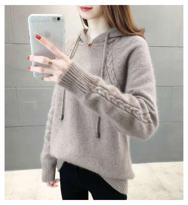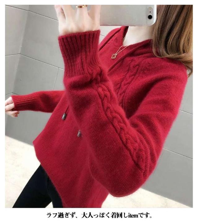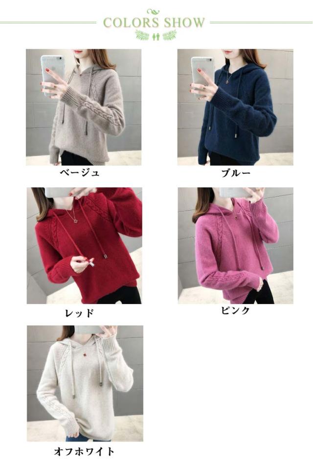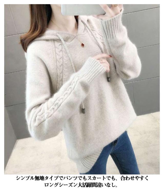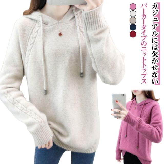 長袖 インナー レディース ニットトップス ケーブル編み ニットセーター ニットパーカー ニット プルオーバー フード付き プルオーバー フード付きパーカー 無地 きれいめ カジュアル 春 秋 冬 柔らかい 大きいサイズ ケーブル編み カジュアル シンプル 可愛い