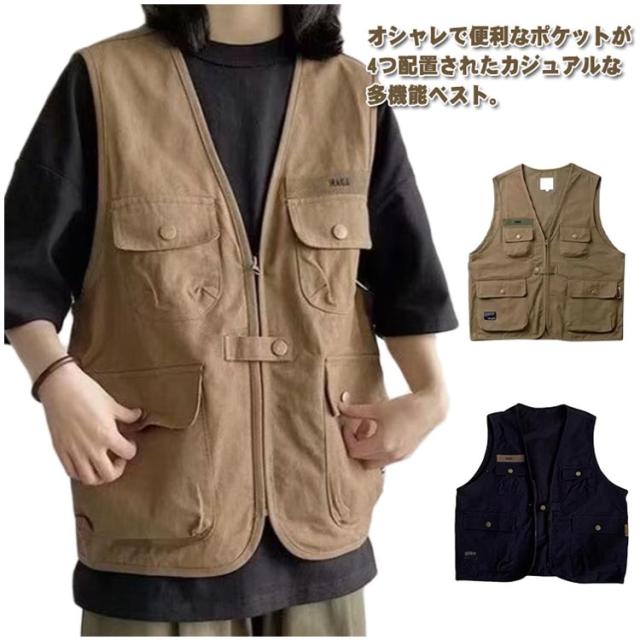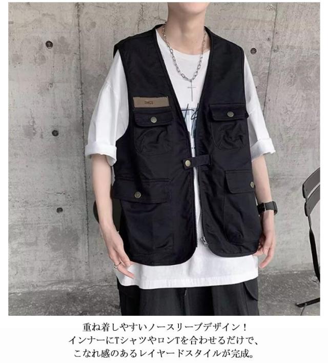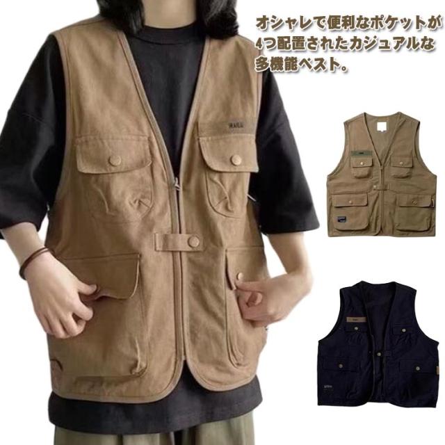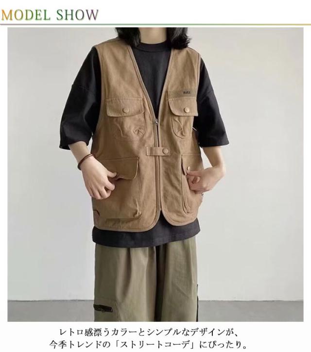 ジレベスト カジュアルベスト ワークベスト ジレ 前開き ワーク風 ゆったり チョッキ メンズ 多ポケット ベスト 羽織り 春夏 多機能ベスト チョッキ 夏 春秋 春 秋 ベスト ミリタリー ストリート ゴルフ 作業着 釣り アウトドア フィッシングベスト