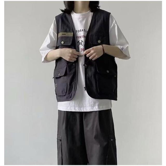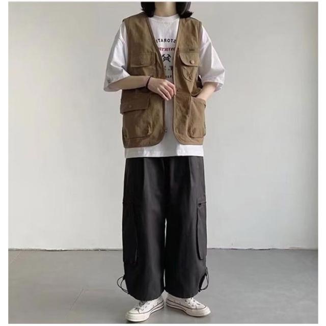 | オシャレで便利なポケットが4つ配置されたカジュアルな多機能ベスト。 レトロ感漂うカラーとシンプルなデザインが、今季トレンドの「ストリートコーデ」にぴったり。 多ポケット仕様で機能性も◎ フロントにポケット付きで、見た目のアクセントにもなりつつ、実用性も兼備。 重ね着しやすいノースリーブデザイン!インナーにTシャツやロンTを合わせるだけで、こなれ感のあるレイヤードスタイルが完成。 | |