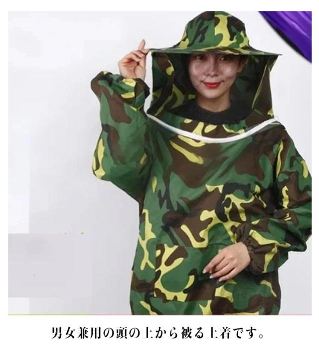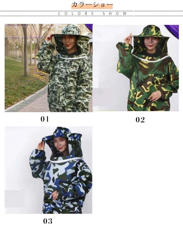 養蜂用 長袖 防護服 作業服 レディース 迷彩 男女兼用 トップス 蜂巣 草刈り 農作業 養蜂用 メンズ 作業着 害虫駆除 蜂よけ フェイスネット ガーデニング 造園業
