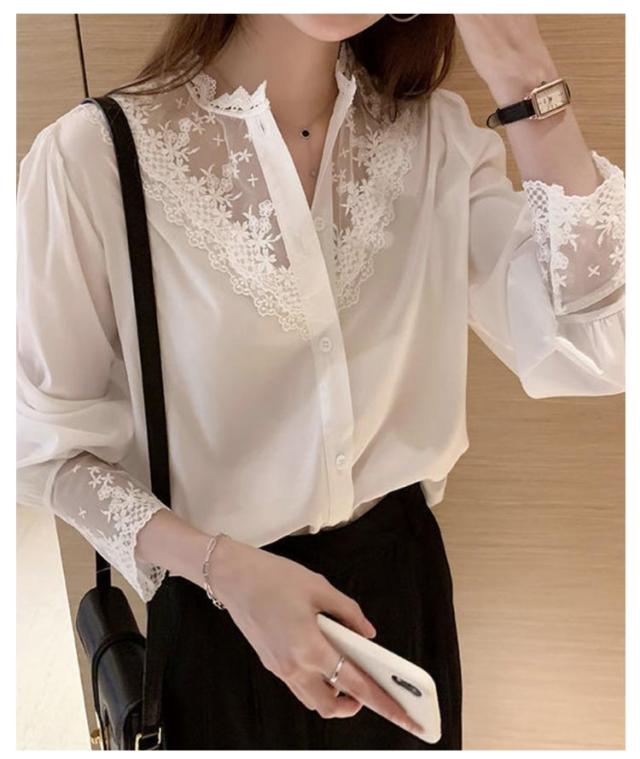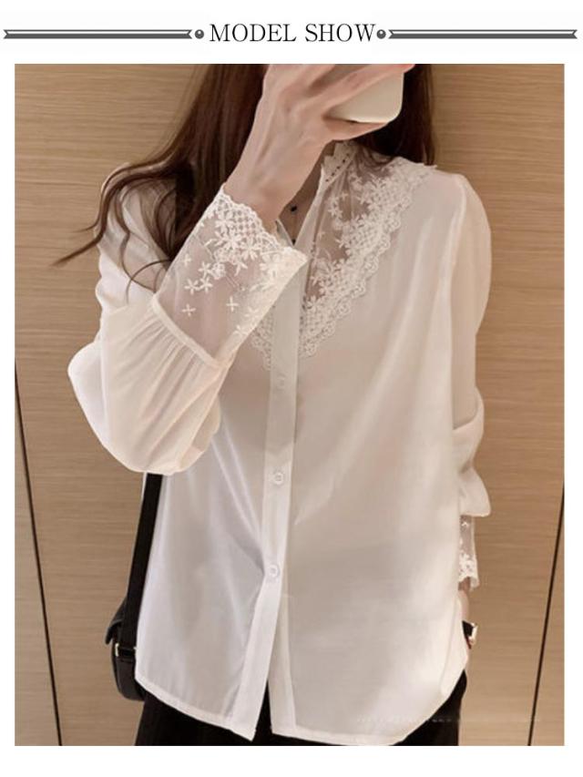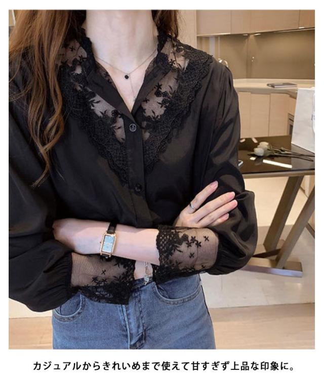 長袖 シアー レディース レース 大人 レース シャツ ブラウスシャツ 花柄レース ネック ブラウス ブラウス スーツ チュニック レースインナー トップス レイヤード レース 春 夏 羽織 シアーシャツ シフォン